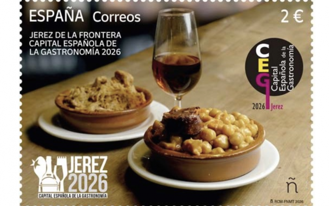 Correos ha puesto en circulación este 27 de febrero el sello Jerez Capital Española de la Gastronomía 2026, una emisión conmemorativa dedicada a la ciudad tras su designación con este título. La iniciativa se enmarca en la serie filatélica que la empresa postal dedica cada año a las localidades reconocidas como Capital Española de la Gastronomía.