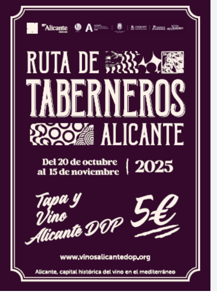 La “Ruta de Taberneros” homenajea la historia del vino en Alicante con la participación de 23 bares y restaurantes que ofrecen una tapa maridada con un vino DO Alicante con el nombre de antiguas tabernas alicantinas de los siglos XVII y XVIII y que se desarrolla hasta el próximo sábado 15 de noviembre.