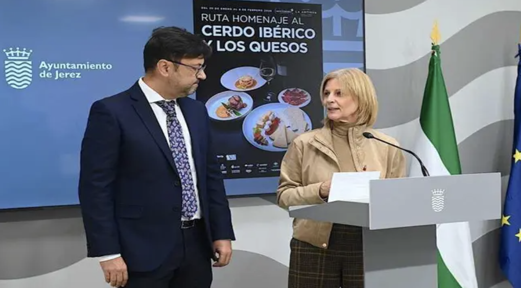 La alcaldesa de Jerez de la Frontera (Cádiz), María José García-Pelayo, y el presidente de la Asociación Hostelería Jerez, Alfredo Carrasco, han presentado la Ruta Homenaje al Cerdo ibérico y los Quesos, que tendrá lugar del 30 de enero al 8 de febrero como reconocimiento a dos productos «fundamentales» de la gastronomía jerezana, elementos «de gran valor cultural, culinario y económico» para esta tierra.